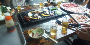 写真がラフティングの様子のものがないので(撮れない・笑)、BBQの模様だけ…。